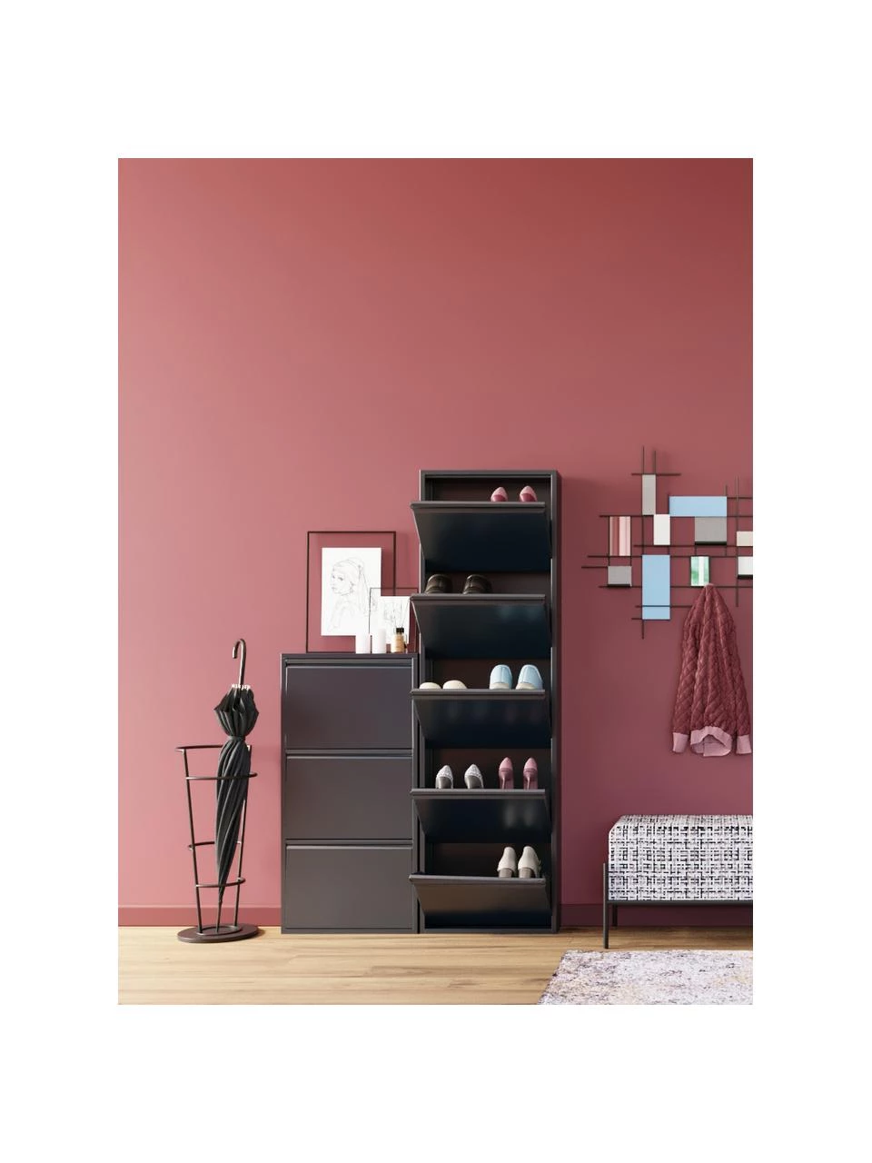 – FĂĽr ca. 10 bis 18 Paar Schuhe geeignet.