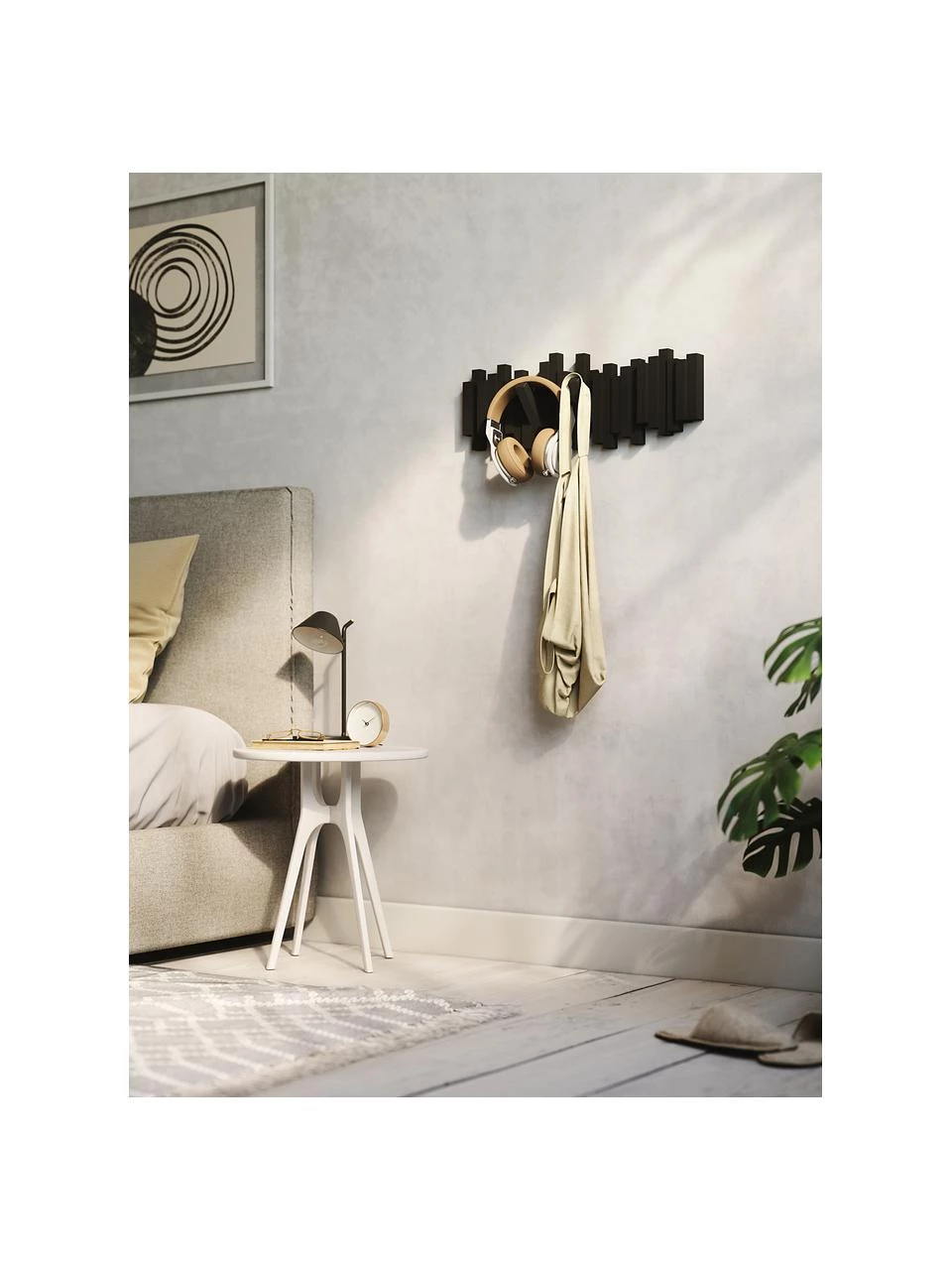 – Kunststoff Wandgarderobe mit 5 herausklappbaren Haken