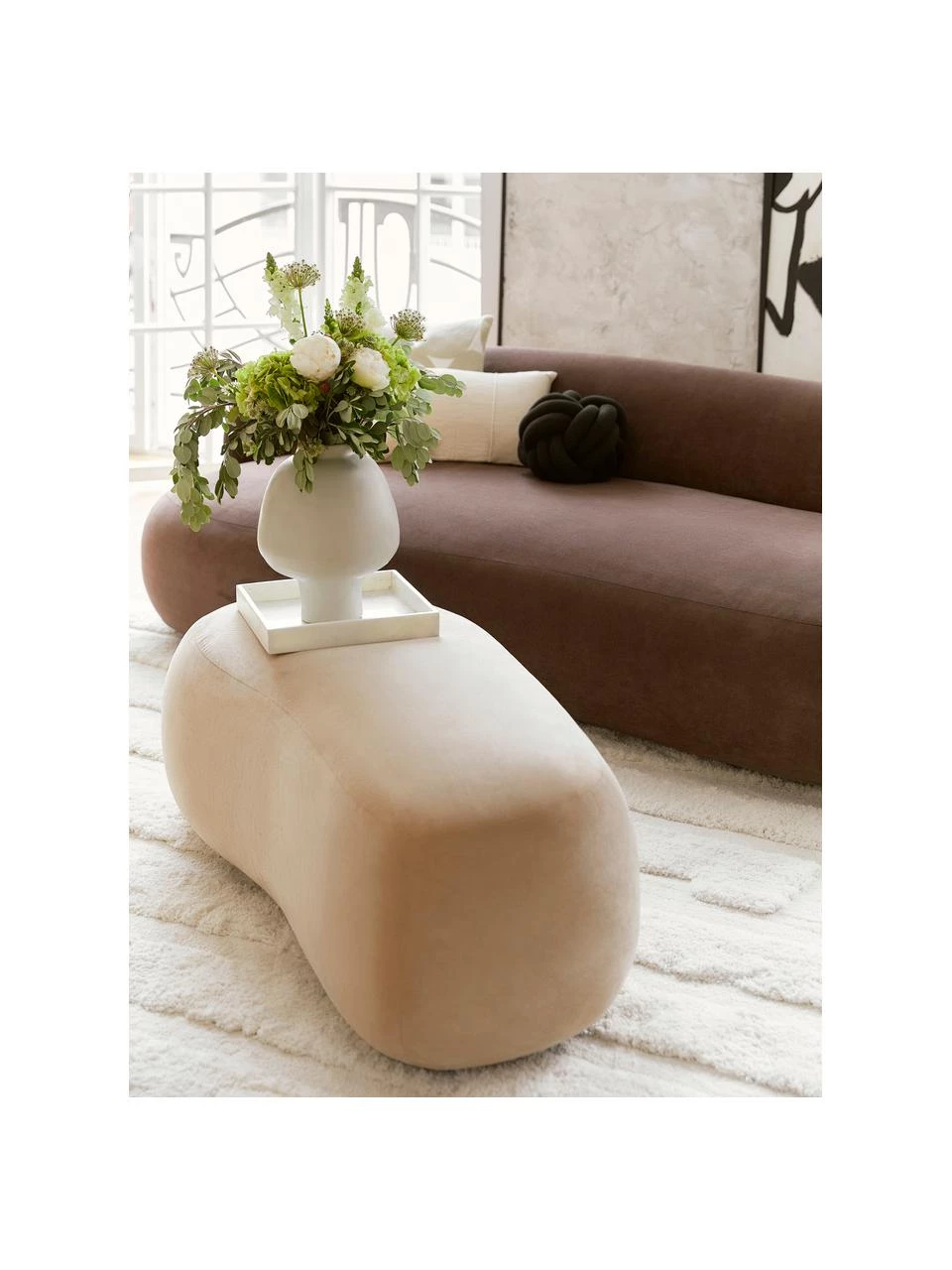 Gemütlich und dennoch ein Design-It-Piece! Unsere exklusive “Alba” Kollektion spiegelt den modernen und zeitlosen Romantik-Stil perfekt wieder und schafft mit ihren organischen Formen eine verzauberte Atmosphäre in ihrem Wohnzimmer. Kombinieren Sie Sofa mit Hocker und bringen Sie mit den einzigartigen Möbelstücken Individualität und Luxus in Ihr Zuhause.