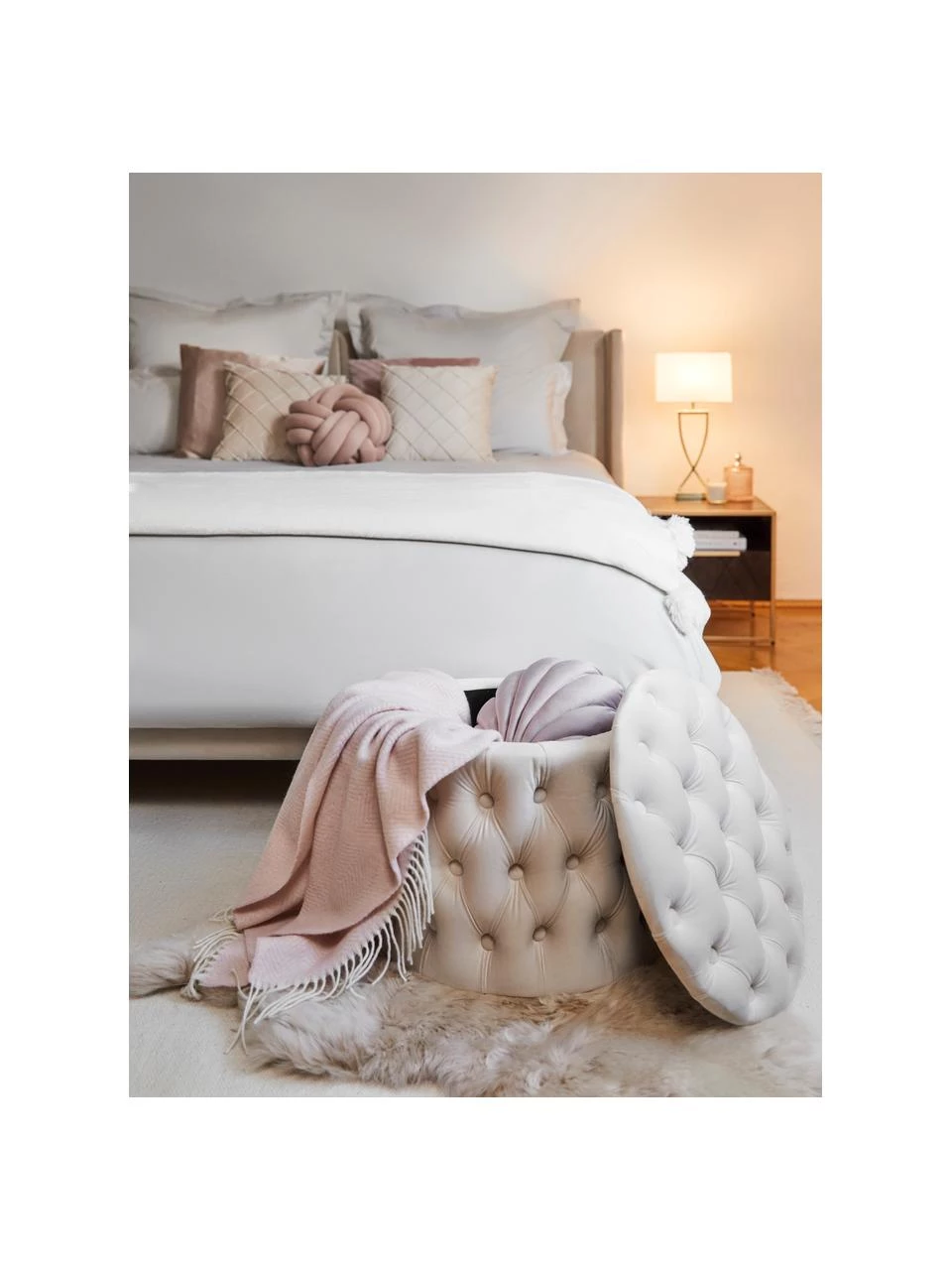 Westwing Collection Samt-Hocker Chiara mit Stauraum in Cremeweiß, Ø 50 x H 42 cm – Bild 5