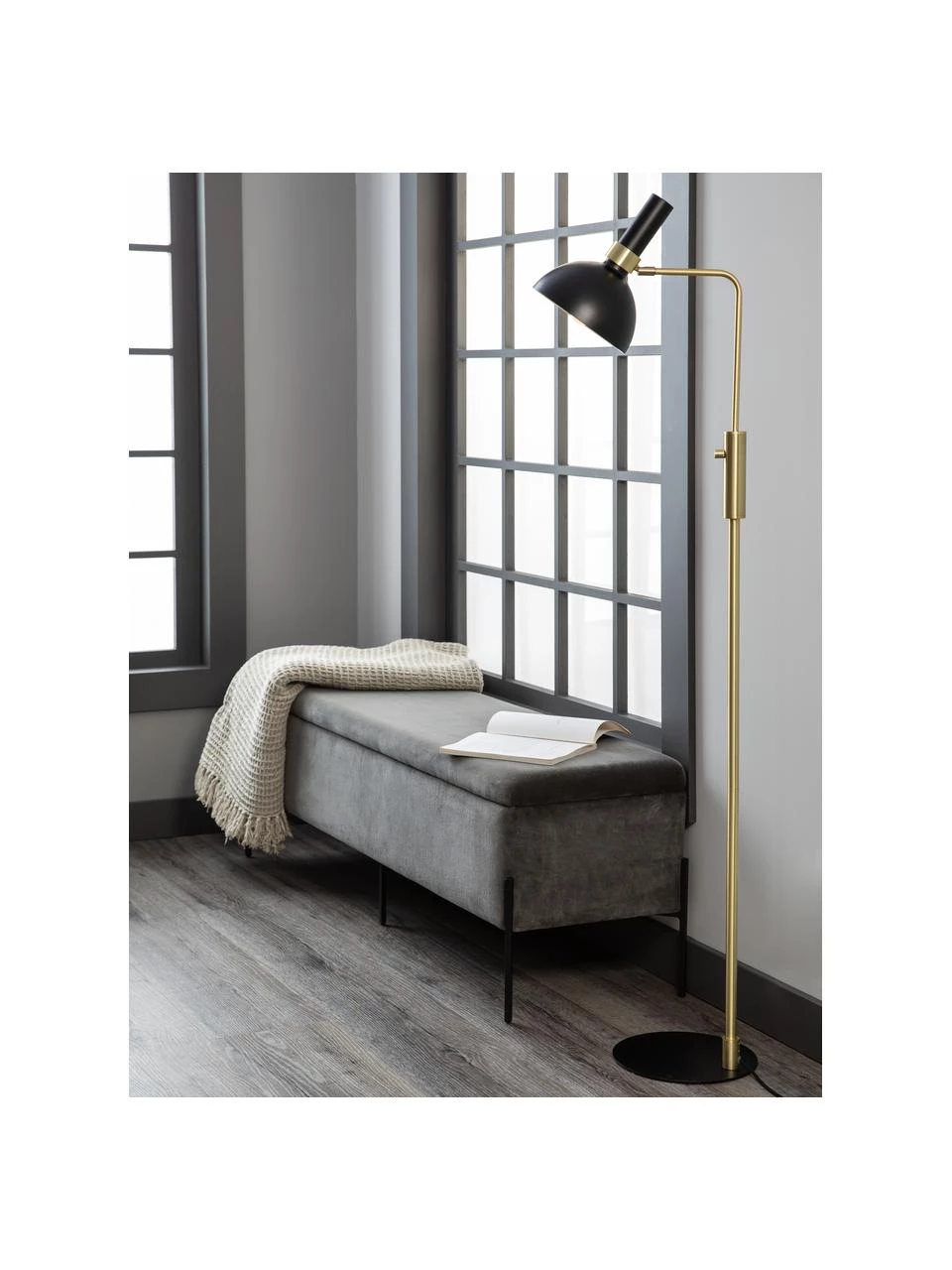Westwing Collection Samt-Polsterbank Harper mit Stauraum in Dunkelgrau, B 140 x H 45 cm
