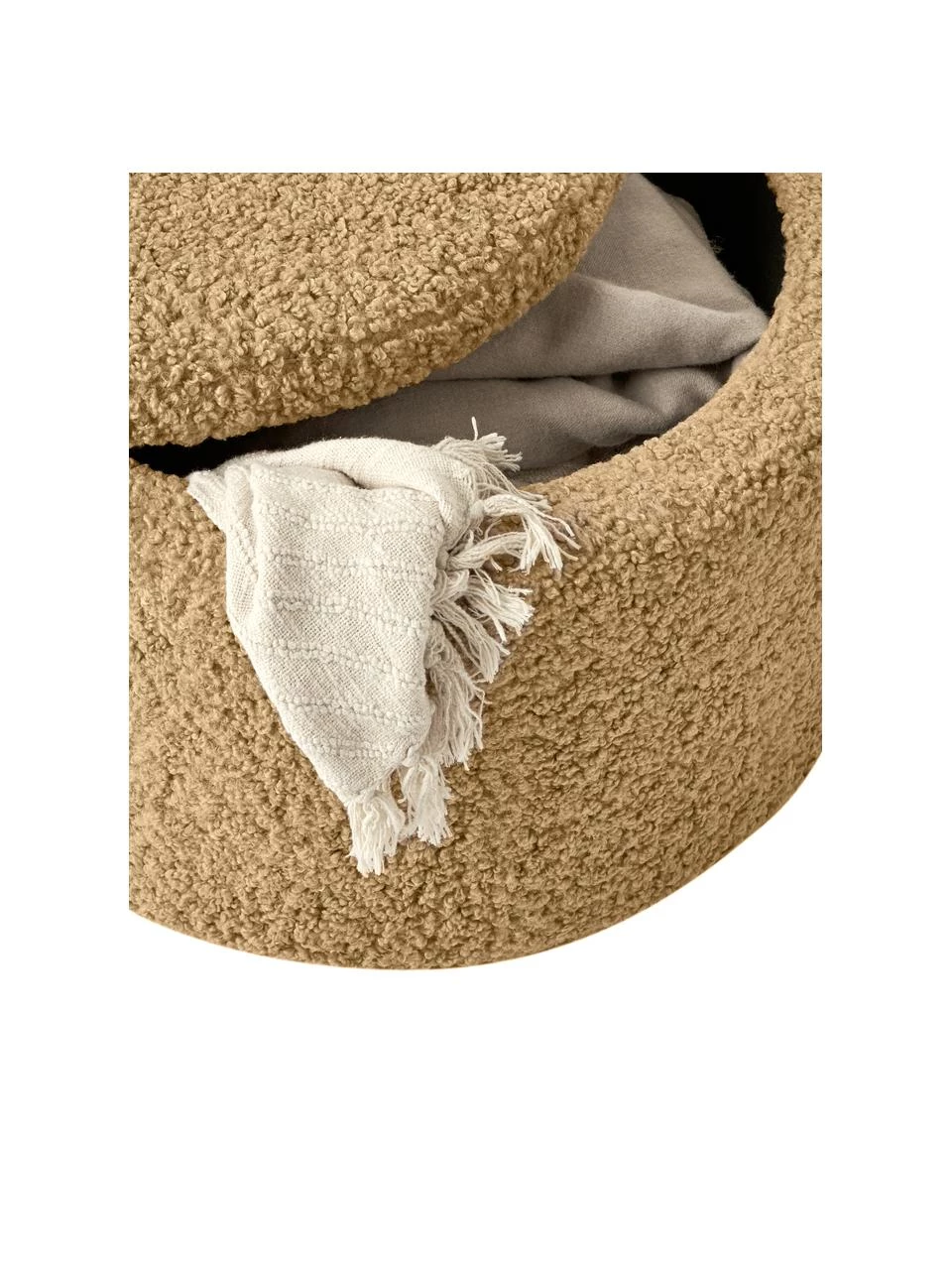 Egal ob zum Füße hochlegen oder als zusätzliche Sitzgelegenheit für Gäste: Alida ist vielseitig einsetzbar und bietet noch dazu viel Stauraum. Unter dem Deckel verschwinden Decken, Kissen und Kleidung im Kinderspiel.